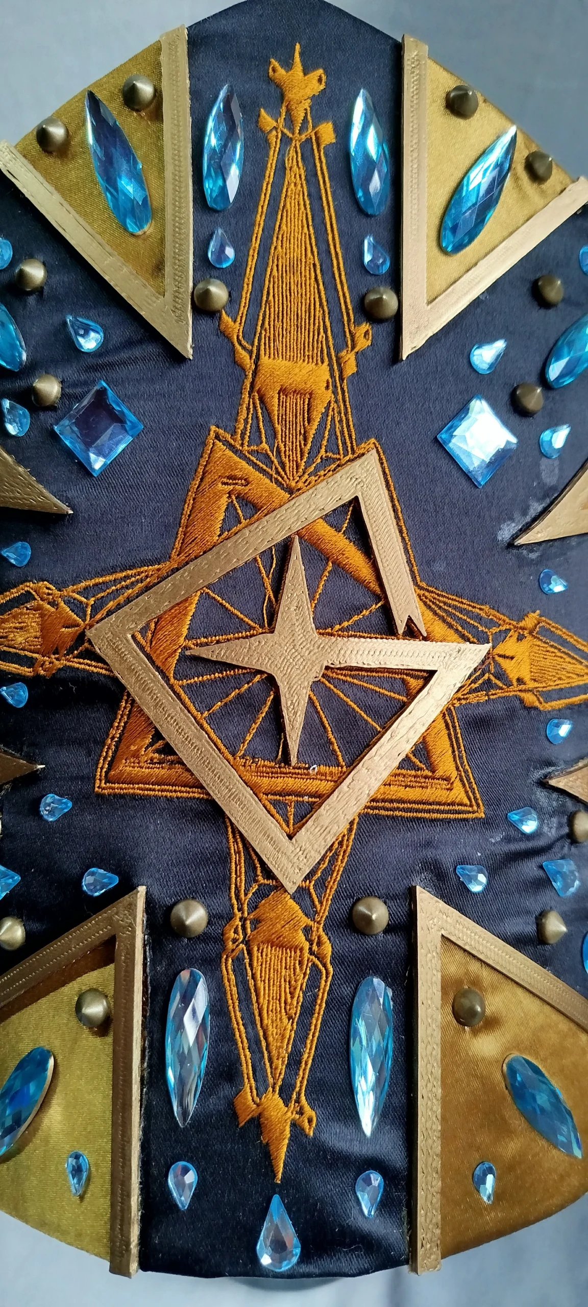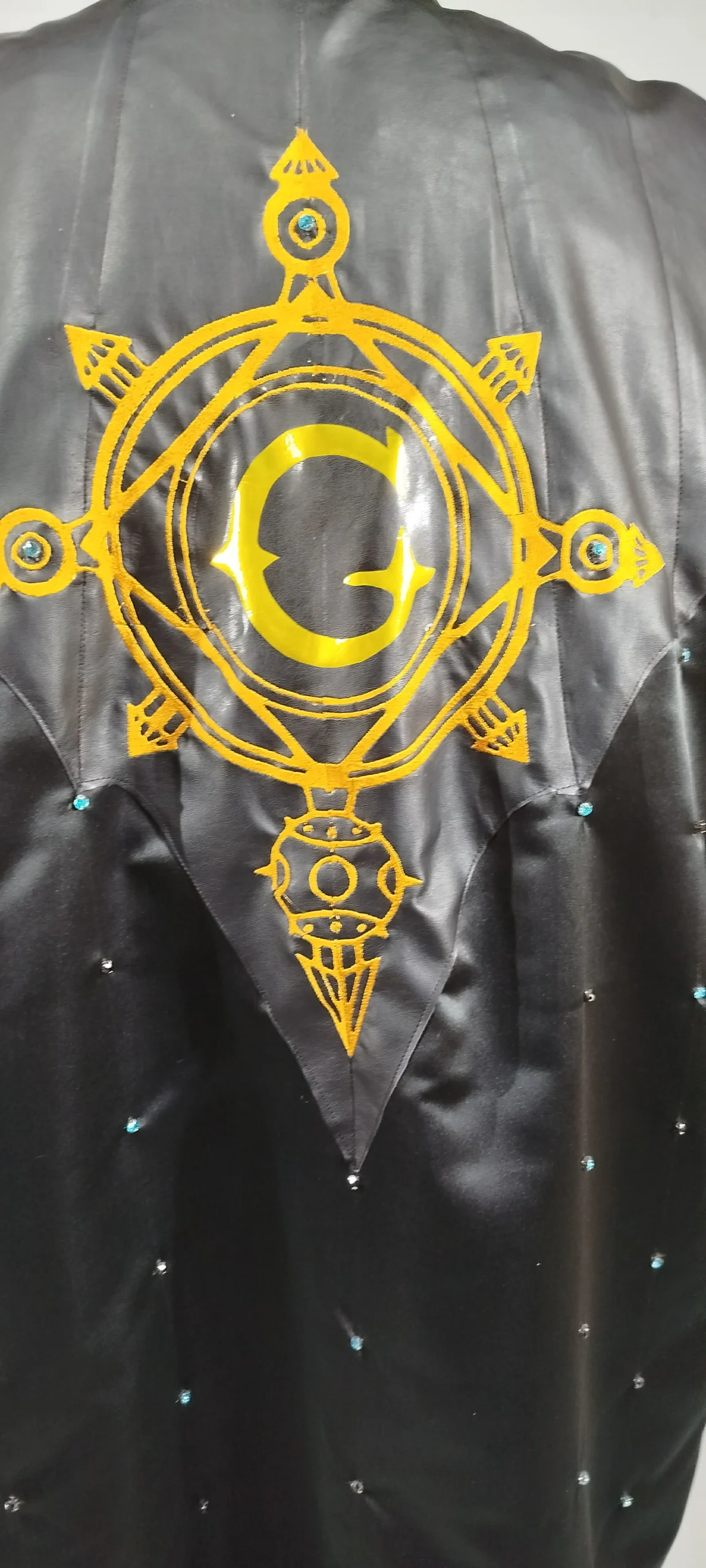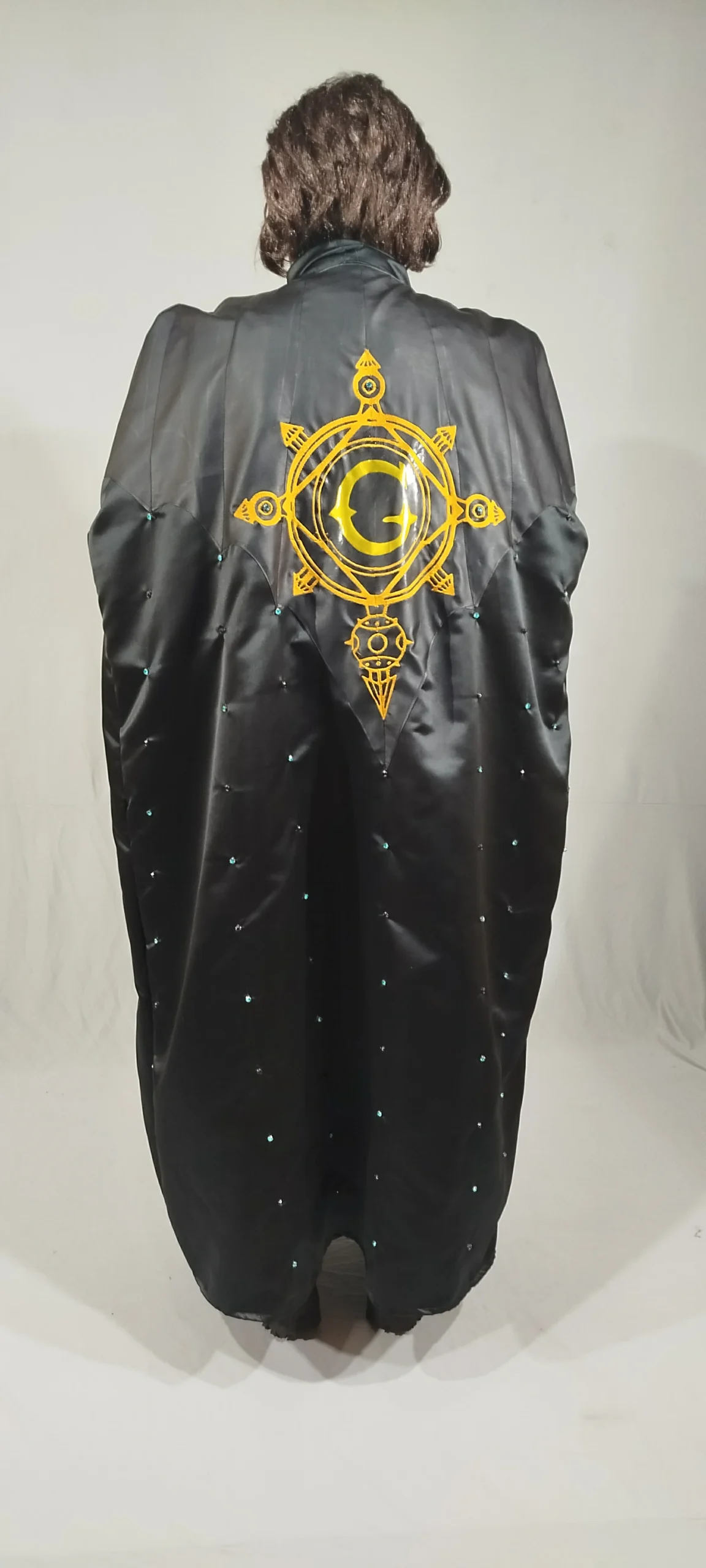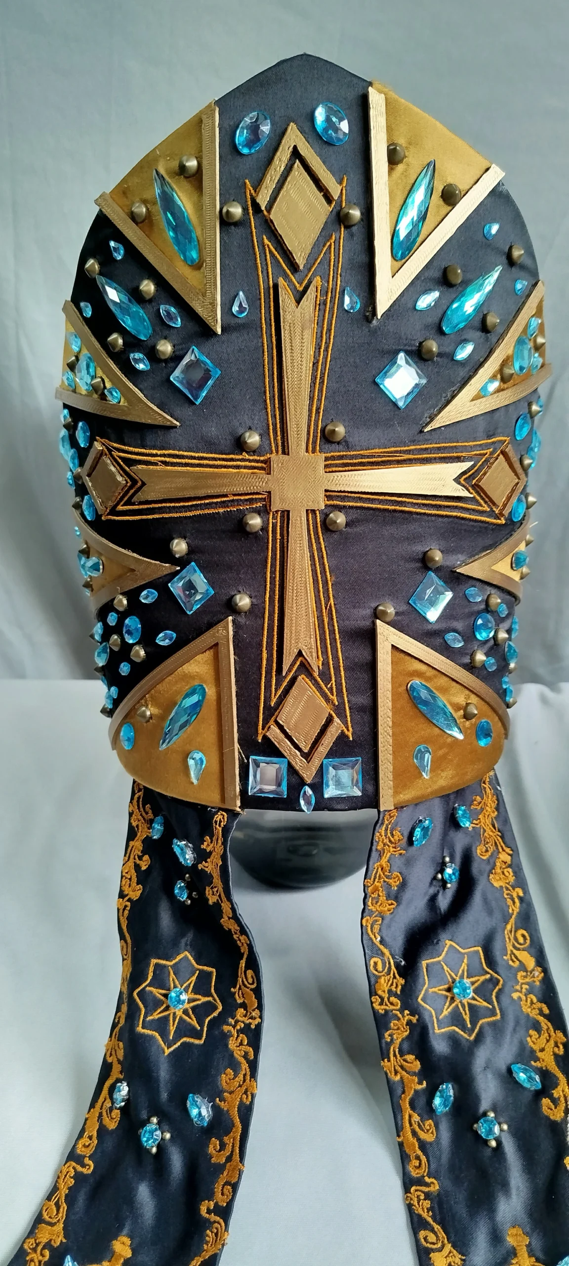 (Inspired) Majestic Black costume with chasuble, stole, cape and miter. With high quality embroidery, rhinestones and rivets.