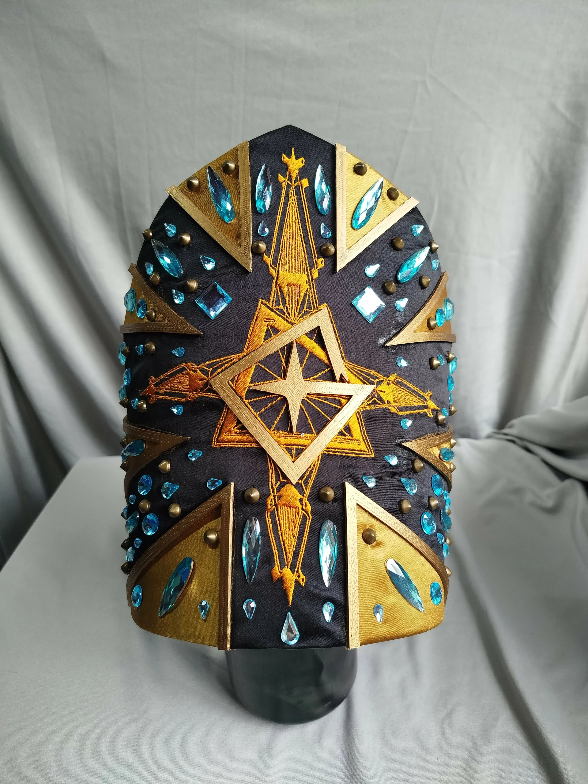 Miter can be worn with or without a mask.