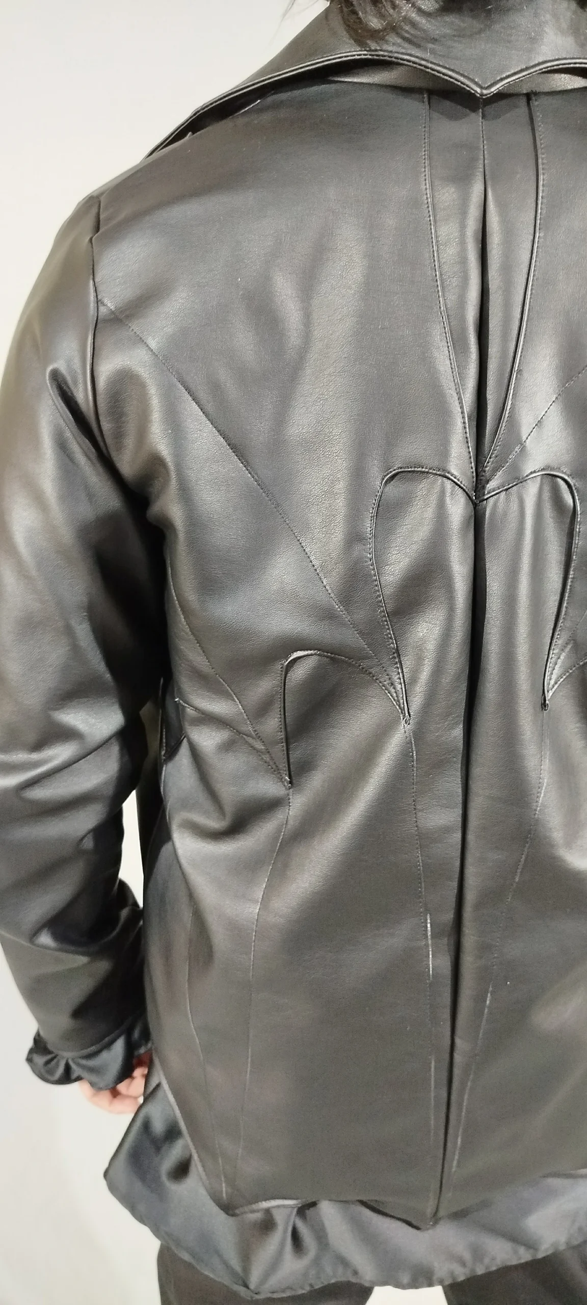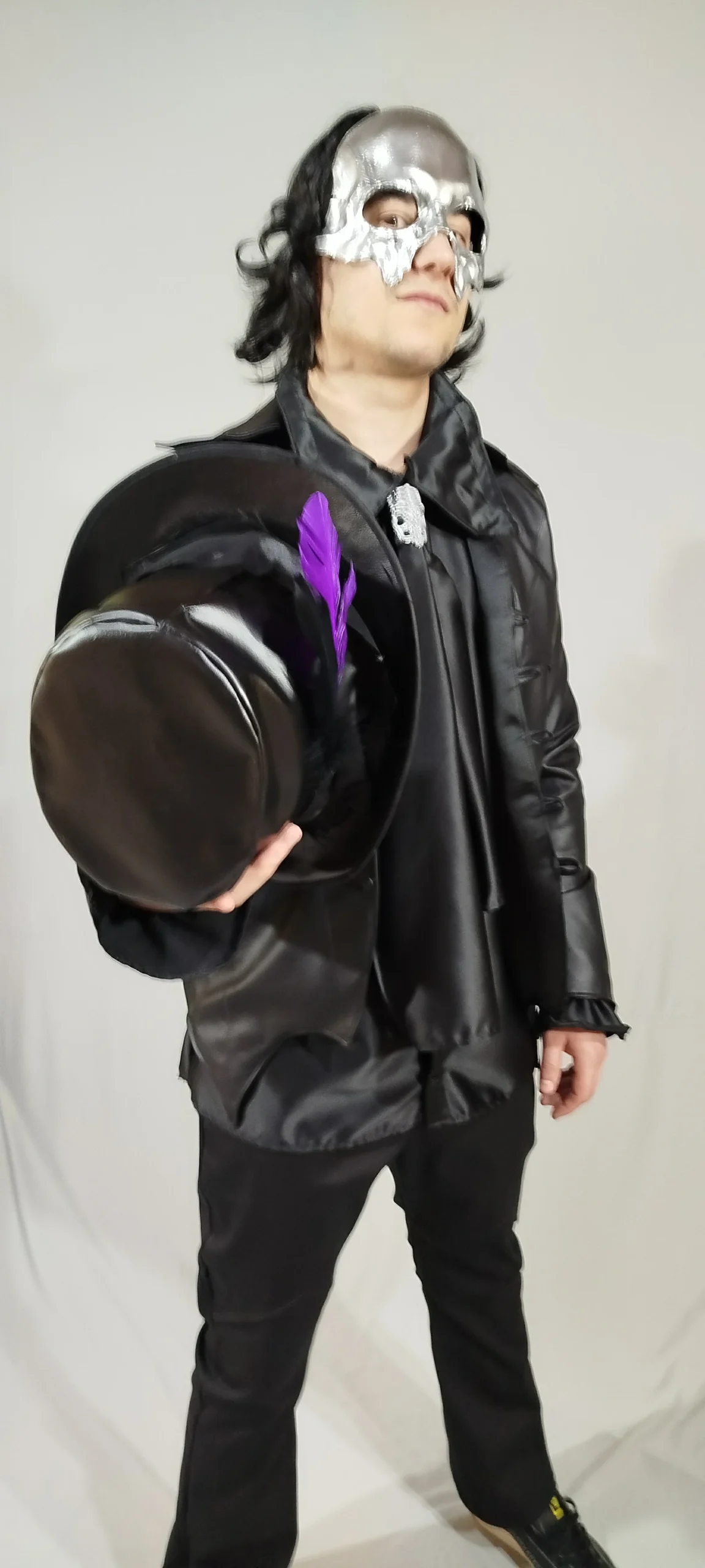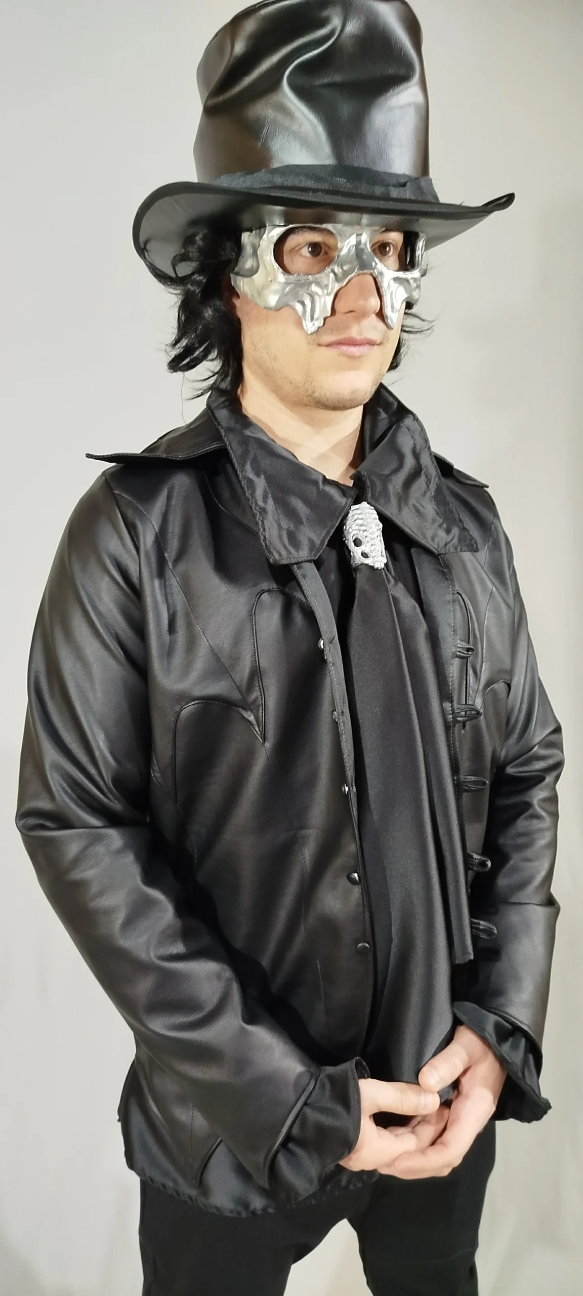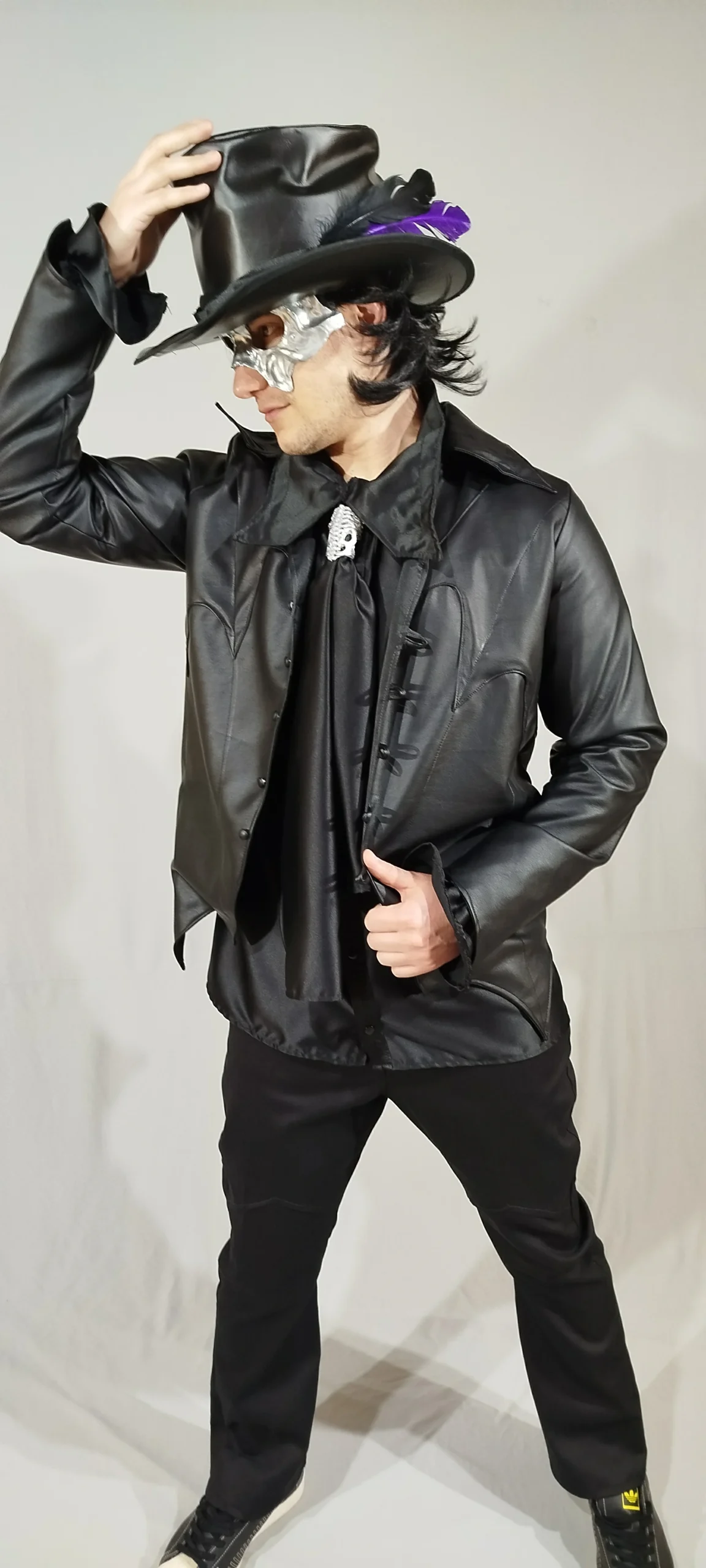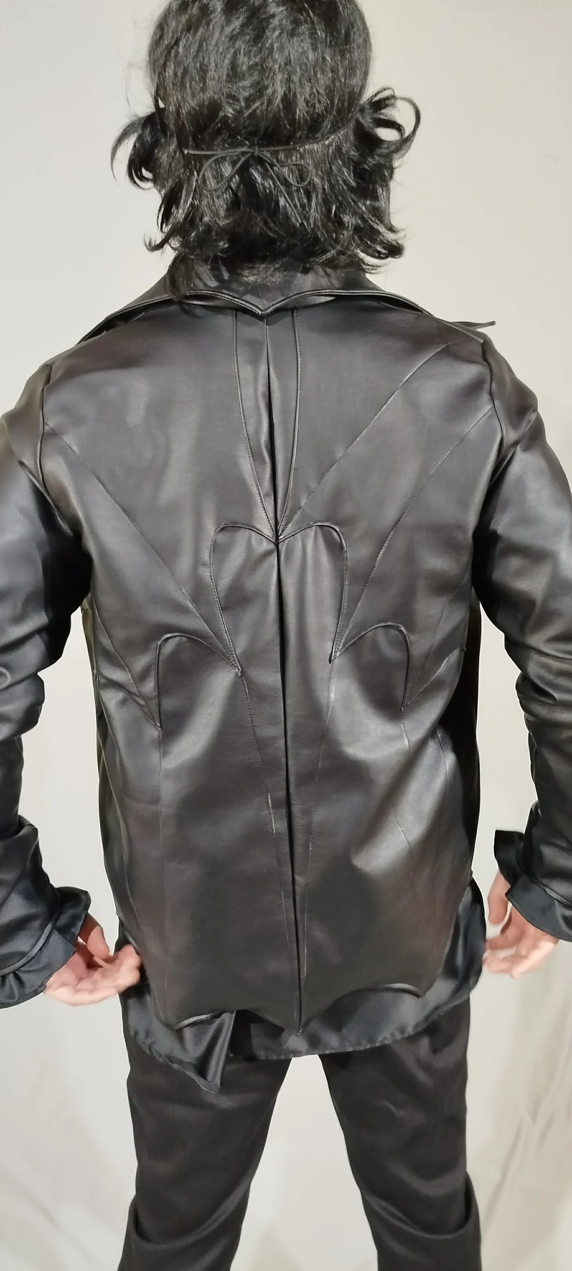 Complete set: includes a stylized leather jacket and coordinated top hat, creating a striking look for cosplay or alternative wear.
